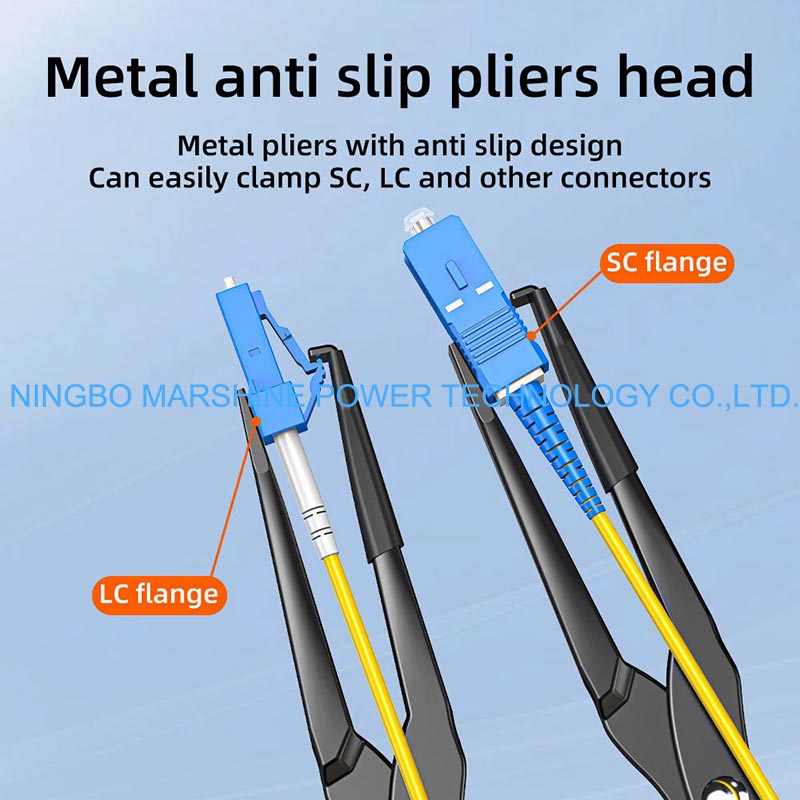 Ang aming MARSHINE Anti-Slip Fiber Optic Connector Tool Flange Clamp Pliers ay pinipindot ang puwersa sa pamamagitan ng connector flange upang ma-deform ang mga flanges sa unahan, habang ang load ay inililipat sa kabilang panig na nakakaalam ng balanse ng presyon at tamang pagpoposisyon.